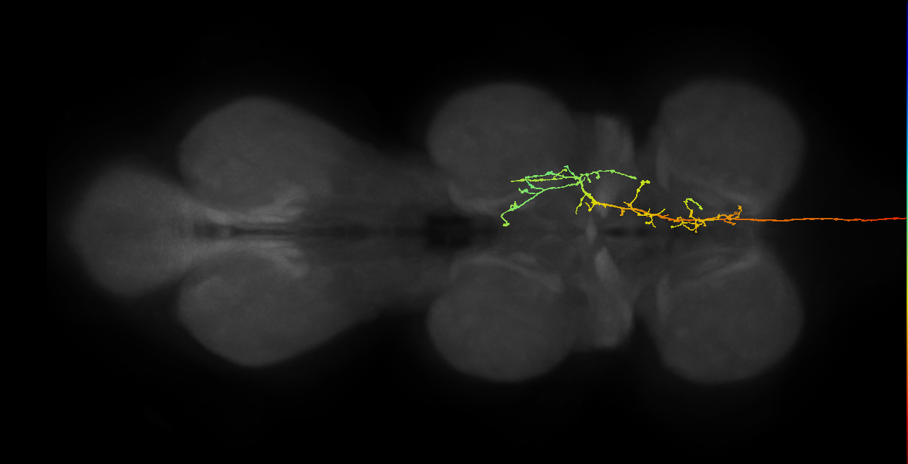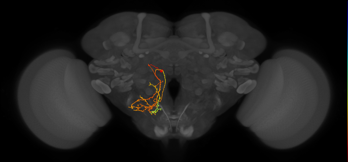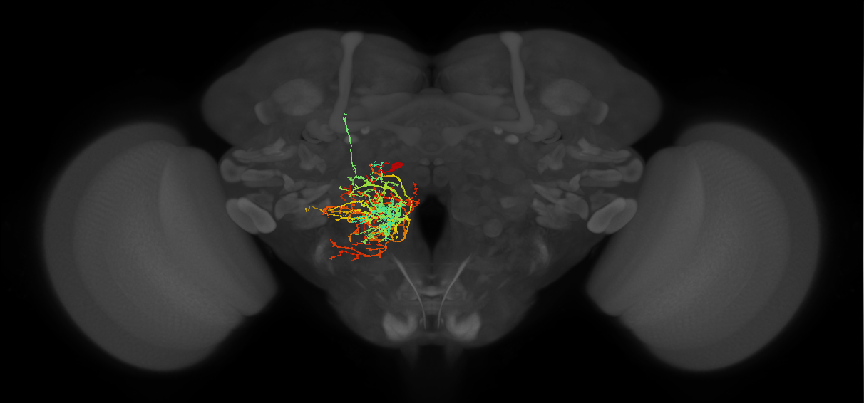 - overlaps: adult crepine, adult lateral accessory lobe, antler, cantle, epaulette, gorget, inferior bridge, inferior clamp, inferior posterior slope, posterior lateral protocerebrum, saddle, superior clamp, superior medial protocerebrum, superior posterior slope, vest
